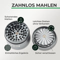 Het resultaat is een fijne, homogene malingEn tegelijkertijd blijft er minder materiaal tussen de tanden steken. Daardoor is de slijpmachine bijzonder gebruiksvriendelijk. gemakkelijk schoon te maken en comfortabel in gebruik..